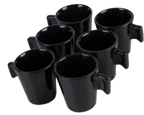 O jogo de canecas para café em porcelana preta 6 peças funciona de maneira similar às xícaras já presentes no mercado.