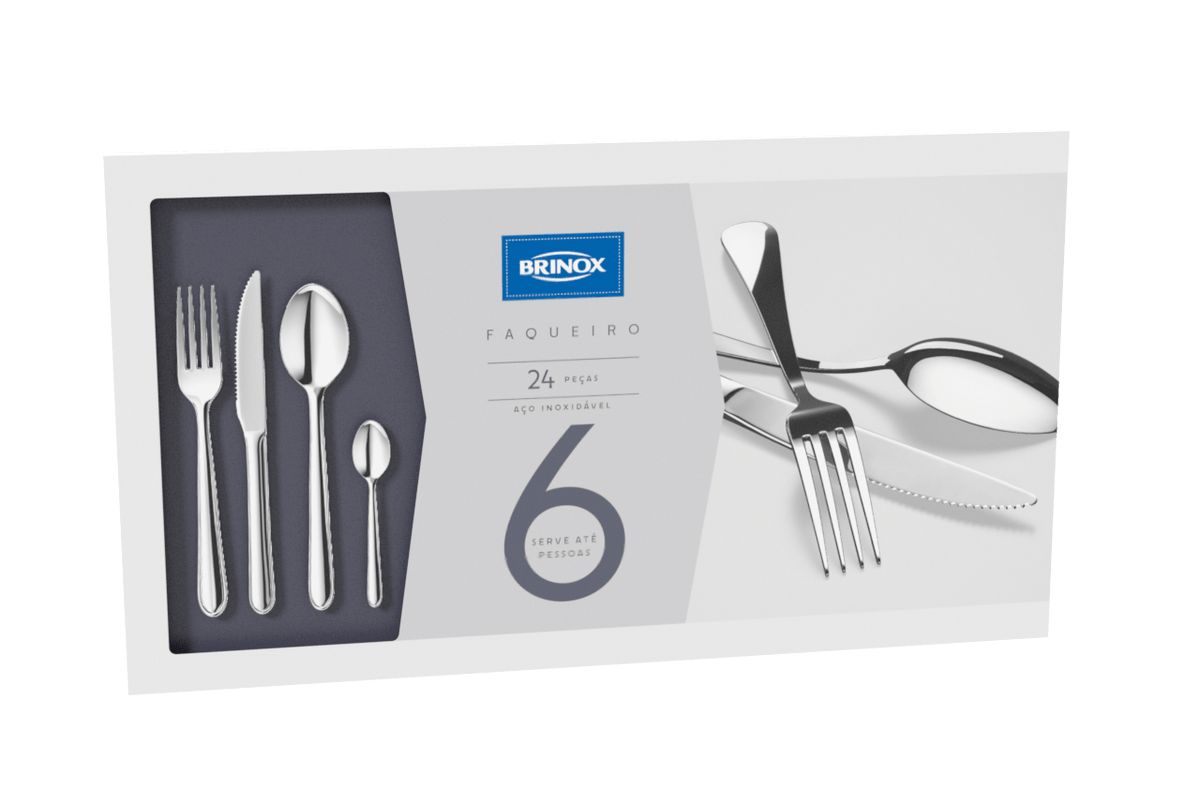 | Composição | 06 Colheres de Mesa 06 Garfos de Mesa 06 Facas de Churrasco 06 Colheres de Chá |
