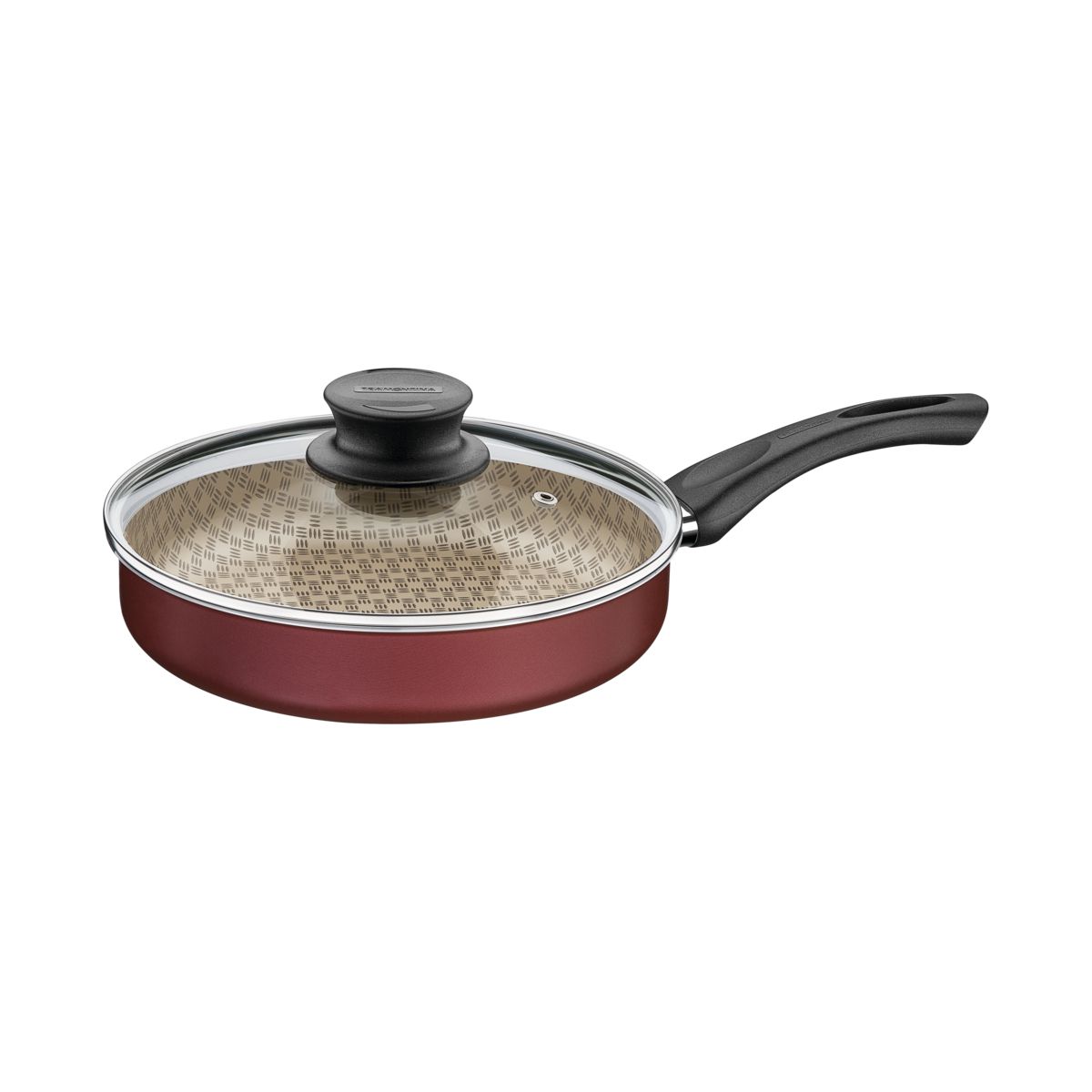 A Frigideira Reta Tramontina Paris em Alumínio com Revestimento Antiaderente Starflon Max Vermelho com Tampa de Vidro 24 cm de diâmetro 2,0 L é uma peça essencial para sua cozinha. Prática e de bom gosto, ela torna o dia a dia mais leve, pois conta com 24 centímetros de diâmetro e vem na linda cor vermelha com decoração interna. Produzida em alumínio com revestimento interno e externo antiaderente Starflon Max, ela possibilita um cozimento mais rápido, uniforme e evita que os alimentos grudem em sua superfície! Além disso, preza por sua segurança e conforto, pois o cabo é em baquelite antitérmico e o pegador em nylon, ambos materiais que reduzem a propagação de calor. Ela ainda acompanha uma tampa de vidro temperado com saída de vapor e borda de aço inox, que permite acompanhar o preparo das receitas com mais facilidade. É uma peça versátil que pode ser utilizada em fogões a gás, elétricos e vitrocerâmicos (resistência elétrica), além de ser levada à máquina de lavar louças.