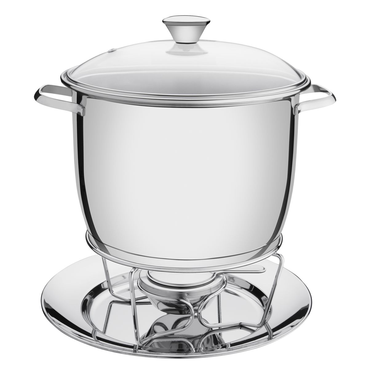 Além de funcionar como rechaud, pode-se utilizar como panela, bastando apenas retirá-la do suporte.