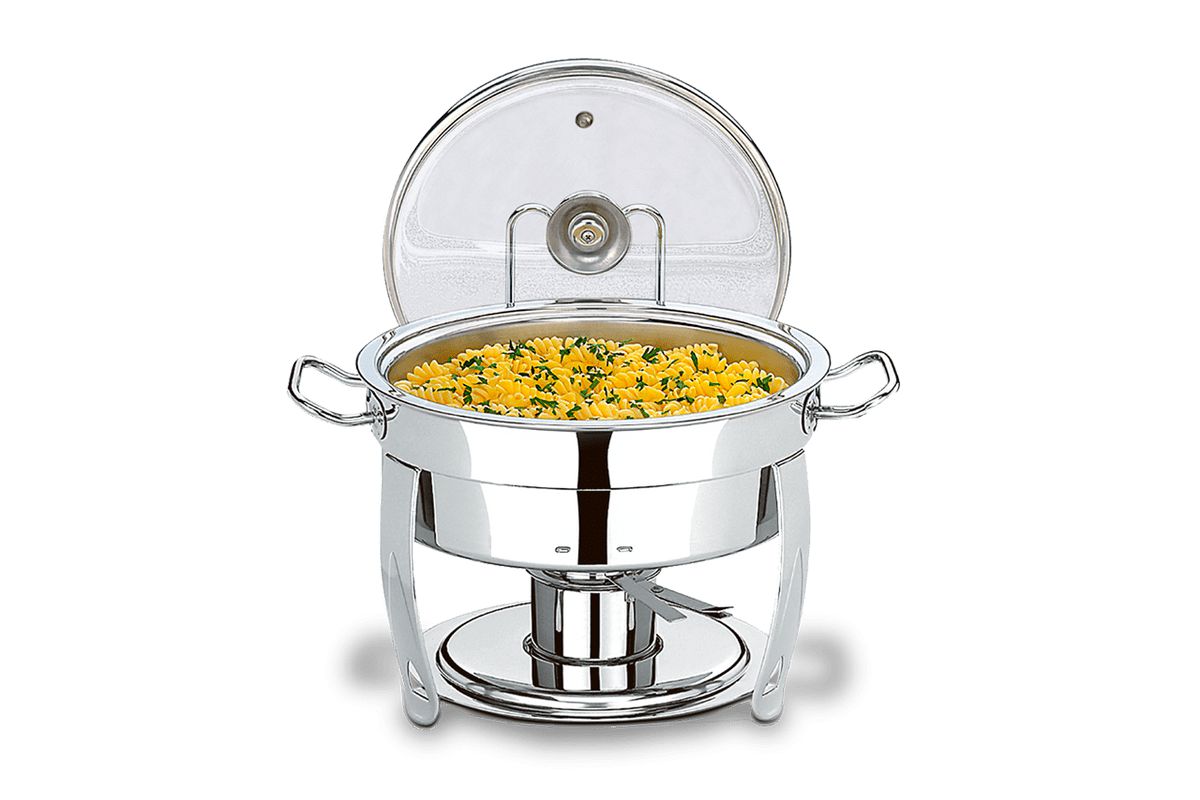 | Composição | 01 Estrutura Inox 01 Tampa Vidro Temperado Ø 30 cm 01 Apoio para Tampa 01 Fogareiro Aço Inox 01 Cuba 5L 01 Cuba para Banho Maria |